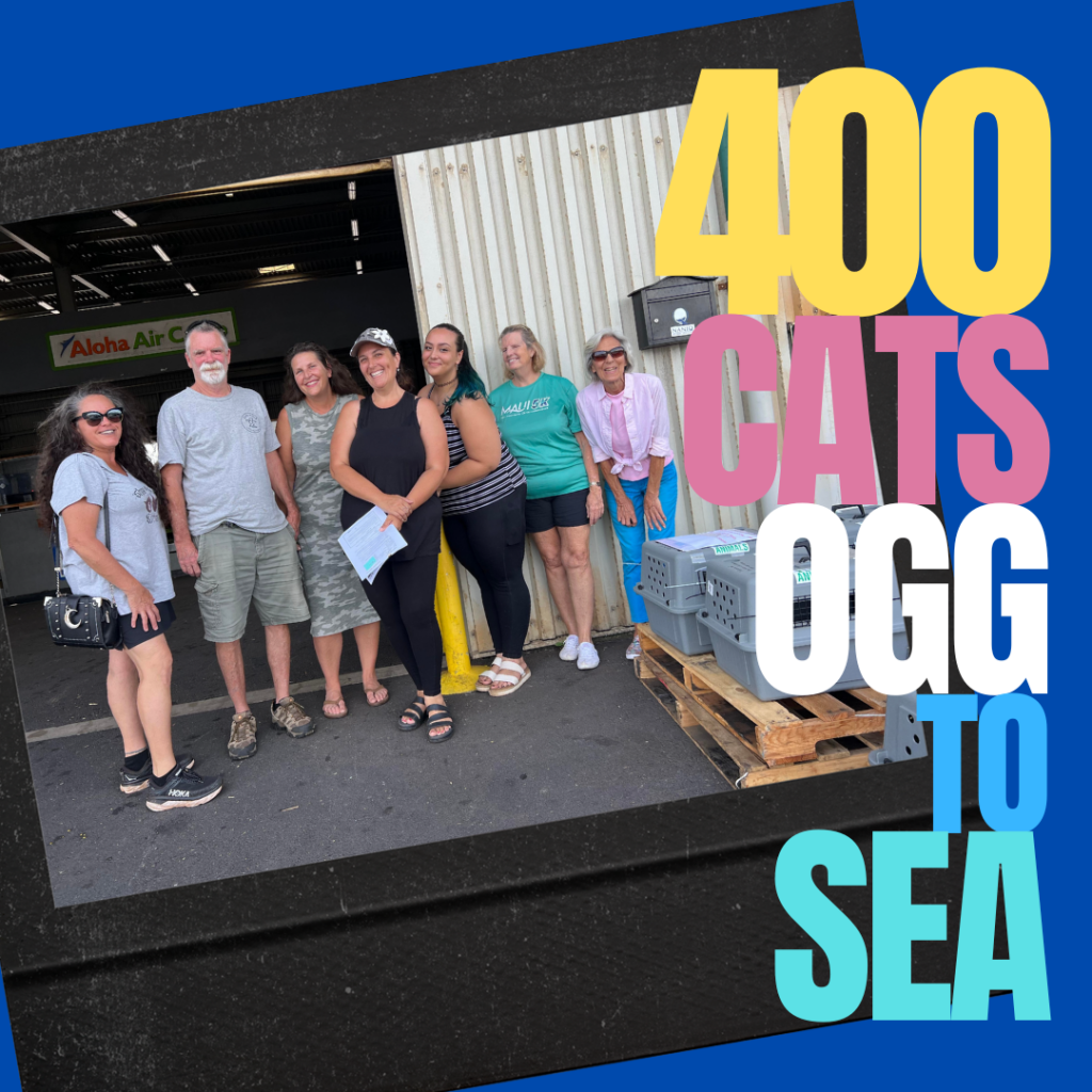 The Kona and Orange Boy Operation Aloha Cat Flight flew fourteen very lucky cats from Maui to Seattle Humane in Washington State on April 11, 2023 via our airline partner, Aloha Air Cargo. This flight was sponsored and named by Renee, supporter and donor of Good Cat Network. Read more about Renee, her Maui rescue cat Orange Boy and her daughter’s Maui rescue cat Kona, in our first-ever Donor Spotlight, here. Although each of these fourteen Maui flight kitties each have their own unique rescue story, we’ve chosen to highlight a momma cat named Sweetie. Story told by Jennie Kalani
