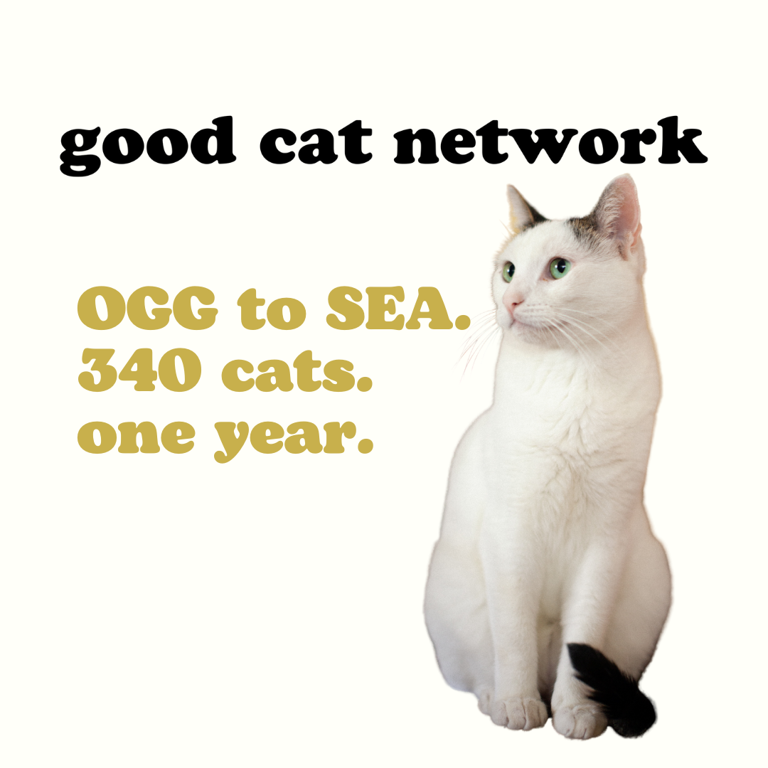 GOOD CAT NETWORK FLIES 340 HAWAIʻI CATS TO WASHINGTON STATE FOR ADOPTION IN FIRST YEAR OF OPERATION