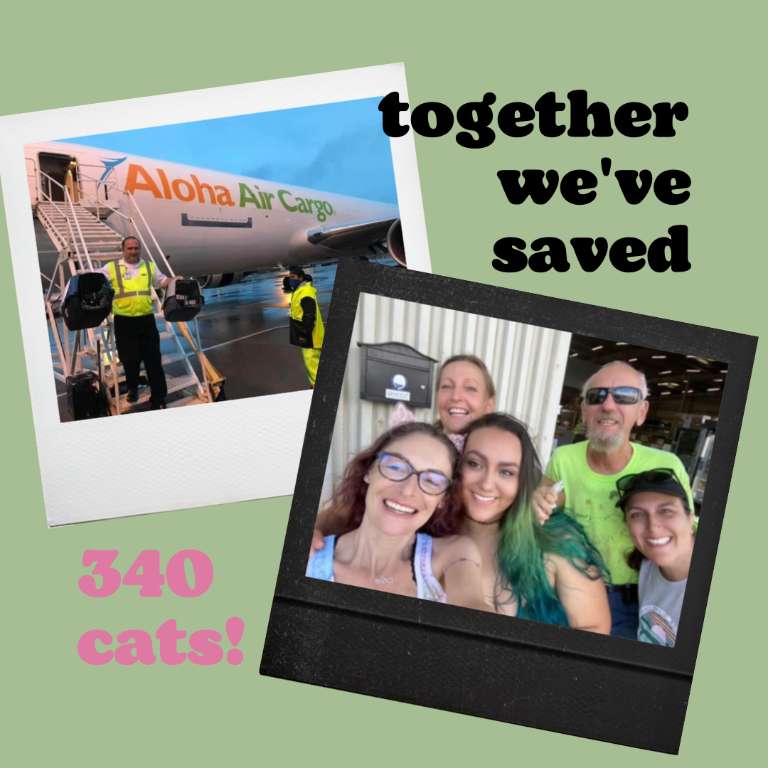 Good Cat Network, a 501(c)(3) non-profit organization operating on the island of Maui, has flown 340 cats to their transfer rescue partners in the Pacific Northwest via a partnership with Aloha Air Cargo in its first year of operation.