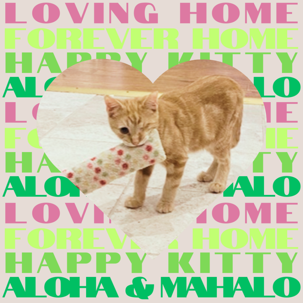 About 2 months ago I found Chucky and his mom down the street from my house living under some bushes. I immediately trapped them, and got them fixed at Maui Humane Society (MHS). I also noticed Chucky had a severe respiratory infection that caused one of his eyes to rupture, so I arranged with a vet at MHS to remove his eye and give him a Covenia shot which got him on the road to recovery.