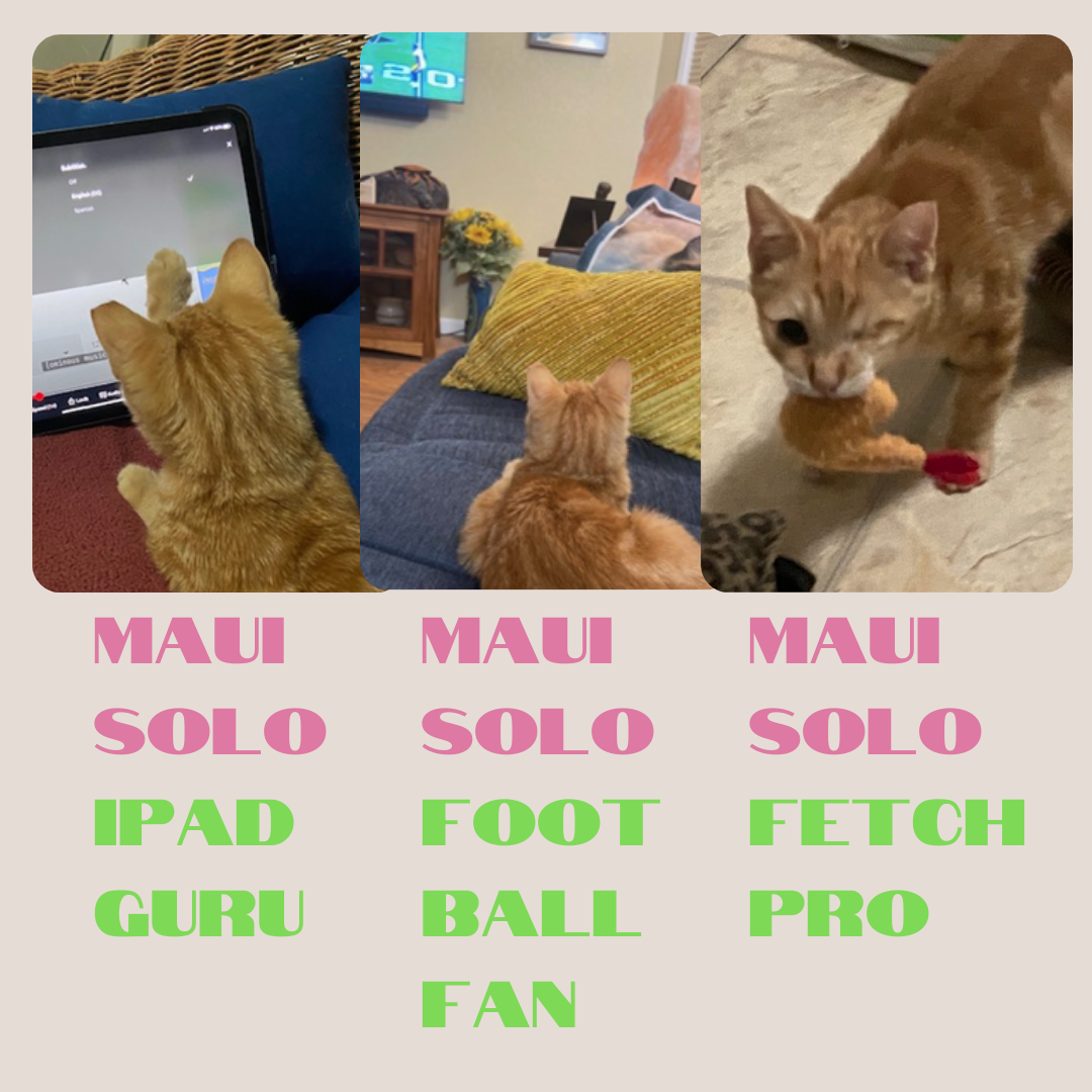We were also open to adoption and it made us happy to know that adoption opens up room in the shelters in Maui for the other cats staying there. Solo (Chucky) was the last kitty from Maui on site and the NOAH staff wanted us to meet him especially because of his medical history. We instantly fell in love with him. He was so tiny and he was very shy. We knew he was a part of our family the second we saw him. His personality surprised us- initially he was so timid and shy (understandable for sure!) that we thought he’d be more of a reclusive type of cat. His true personality has come out!