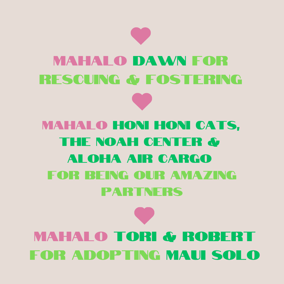 We are so saddened by what happened and wanted to do something to help. The original plan was my husband and I were offering to foster a cat (or two) for a family in Maui for as long as needed- months to years-until that family was back in a stable home environment and then fly the cat back to Maui when the time was right. We’ve actually done this in the past when close friends lost their home in a fire and we kept their cat (ironically named Maui), for about 10 months until they got settled in a rental home. NOAH contacted us when they received the Maui cats and we met with them to discuss this possibility. I’ve learned more about disaster relief scenarios and it seems that most of the cats in this situation (with known families with hopes of taking them back) are being kept on the islands and animals moved off the island, like those from your organization to NOAH, were up for adoption.